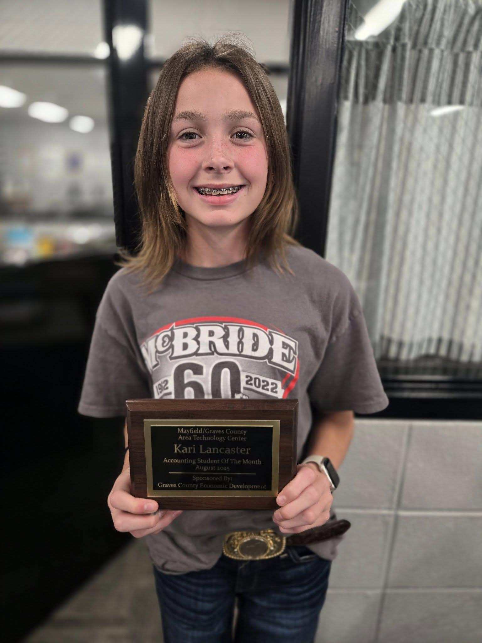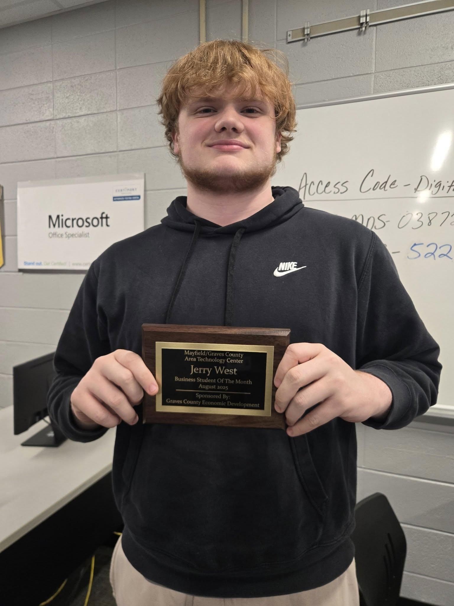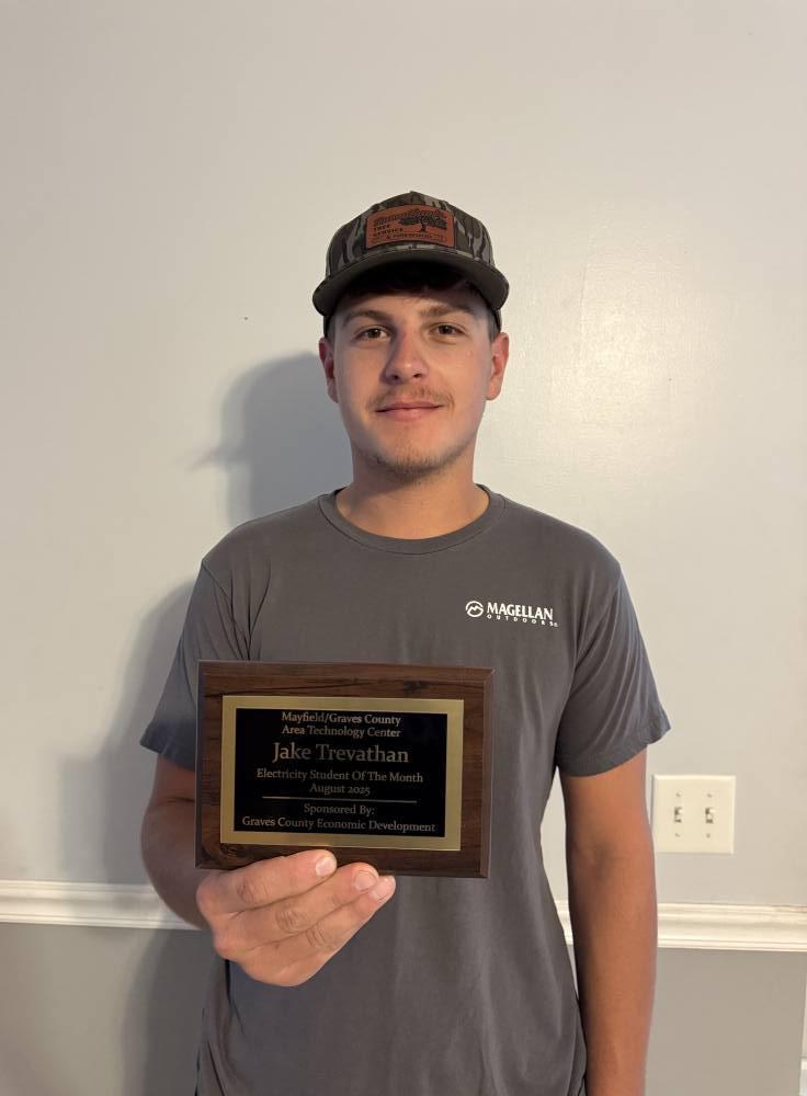 Thanks to Graves County Economic Development for sponsoring this month's plaques, thank you to Awardmasters, Inc. for creating them! If you or your business would be interested in sponsoring our ATC Student of the Month plaques, please contact Graves County Economic Development.